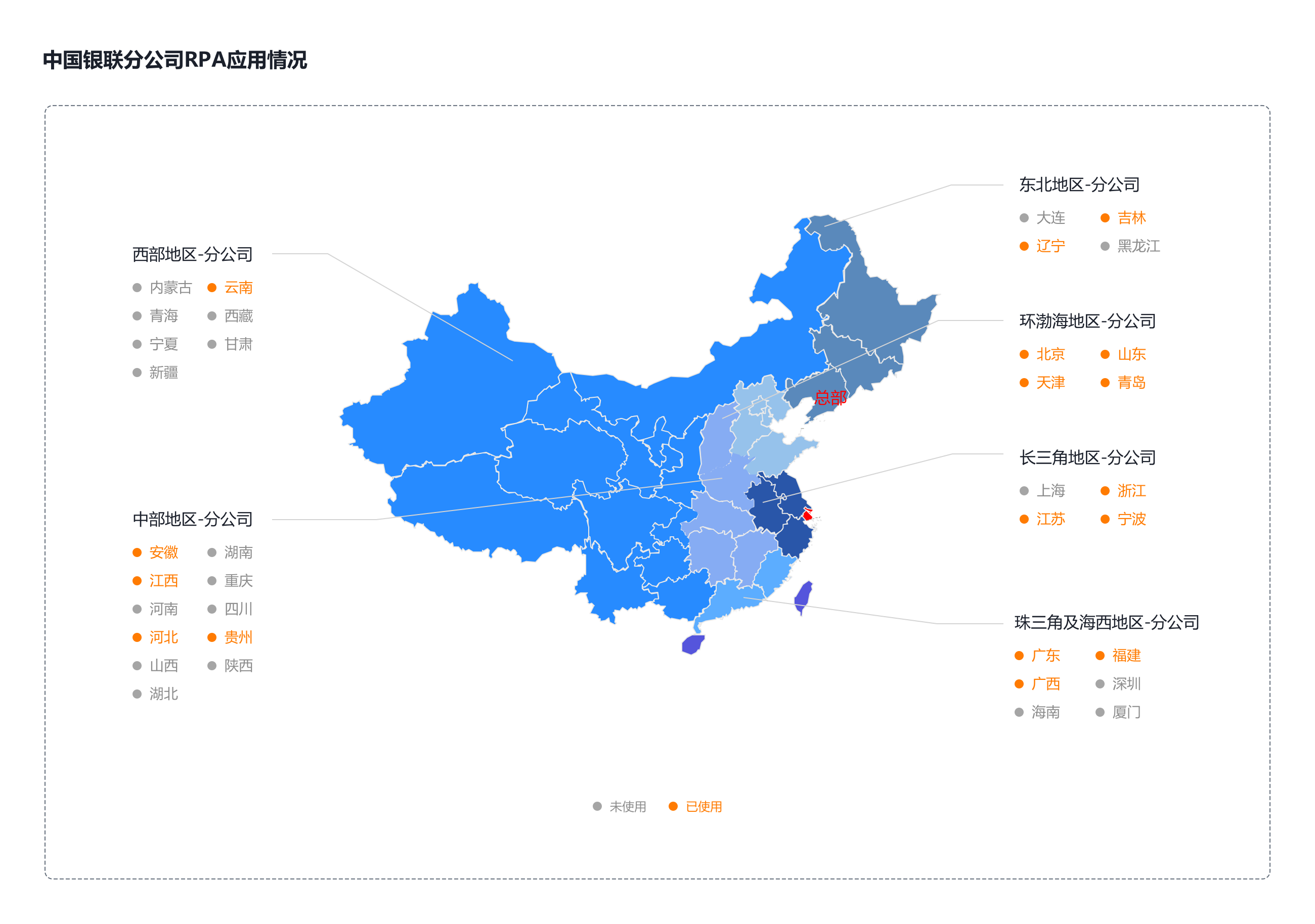 藝賽旗與中國銀聯自2018年開展合作,在多個關鍵部門及多家子分公司部署RPA,涵蓋云計算、客服部門、技術開發中心等。至今,已成功完成眾多項目和流程的建設。