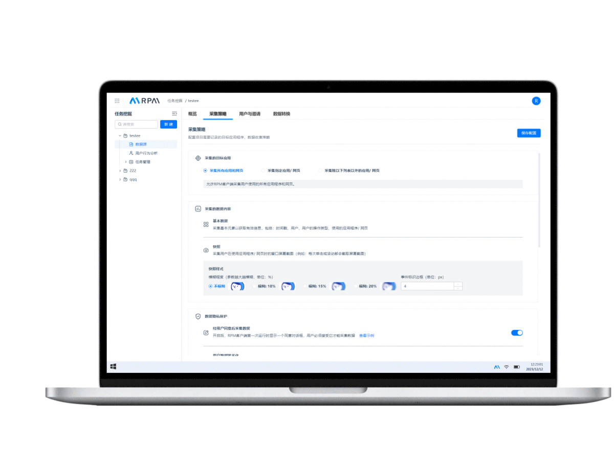 幫助企業深入、真實、準確的了解員工日常的桌面操作行為,并及時發現和識別新的自動化機會。它通過智能化拾取員工的桌面操作日志,如:鼠標、鍵盤等操作,基于計算機視覺、機器學習、數據挖掘等技術對每個員工的操作數據進行分析,快速識別一切值得自動化的高頻任務流。